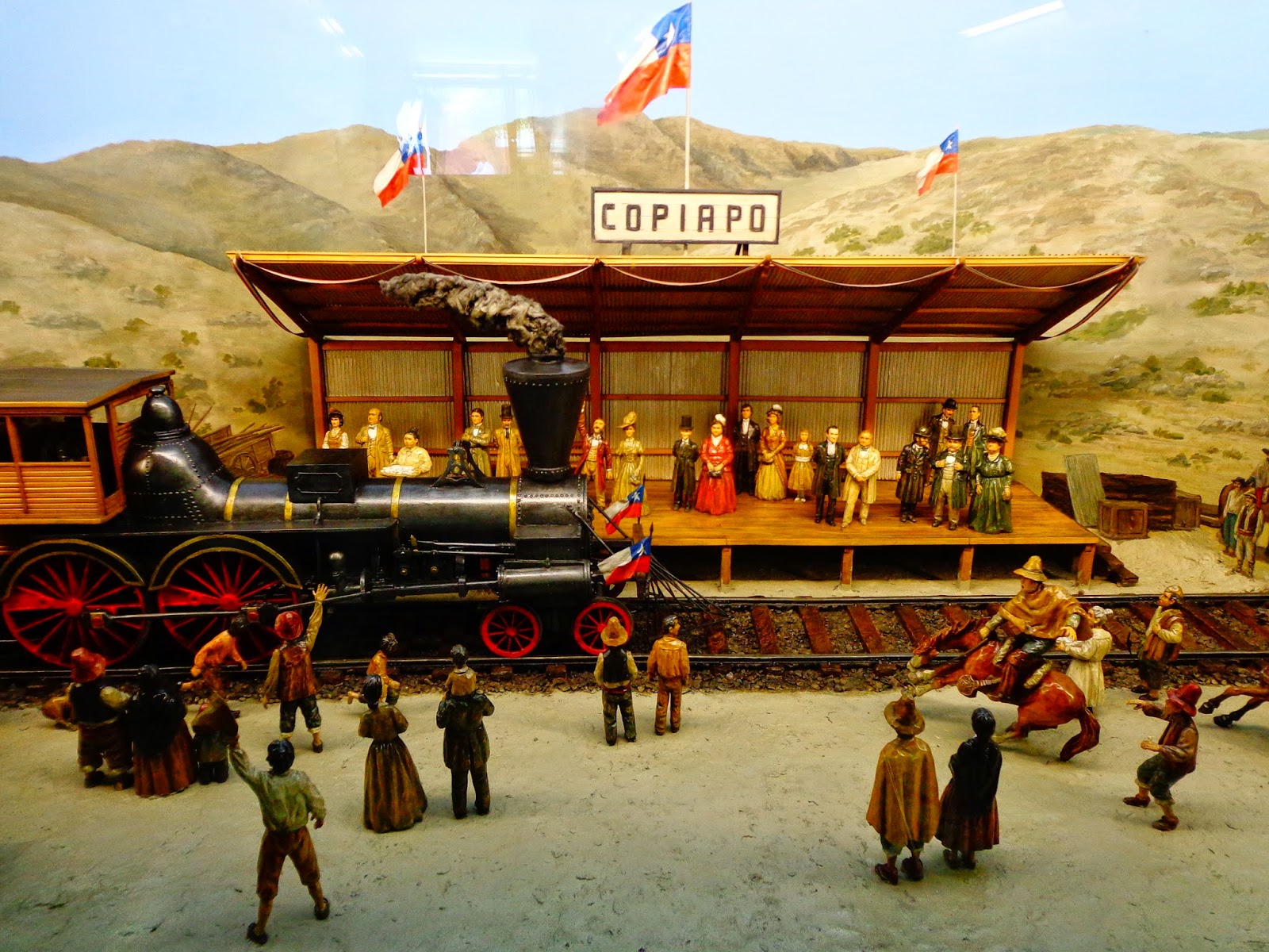 Reabastecida, vamos caminhar, ou melhor pegar o metrô para o centro novamente. E o metro de Santiago merece um pouco da nossa atenção principalmente a estação Banquedano onde há uma pequenina exposição sobre a primeira linha de trem do Chile na região de Copiapó inaugurada em 25 de Dezembro de 1851.