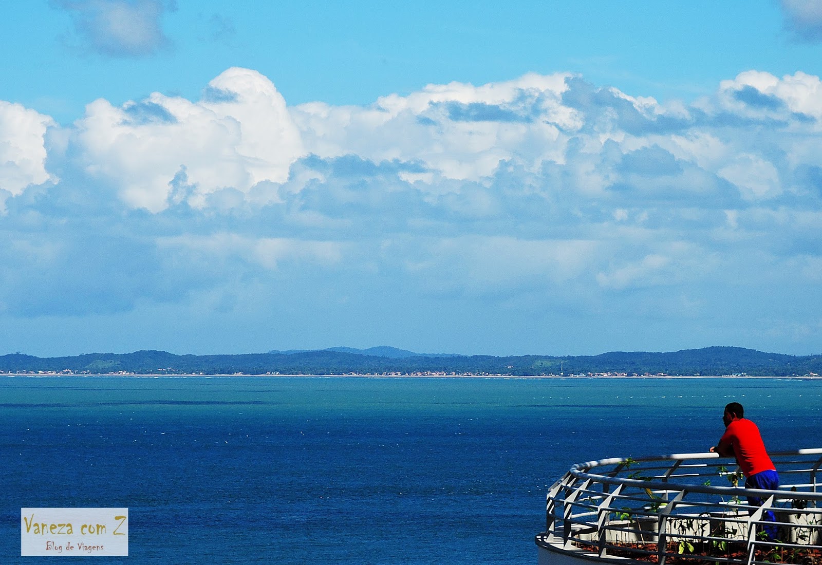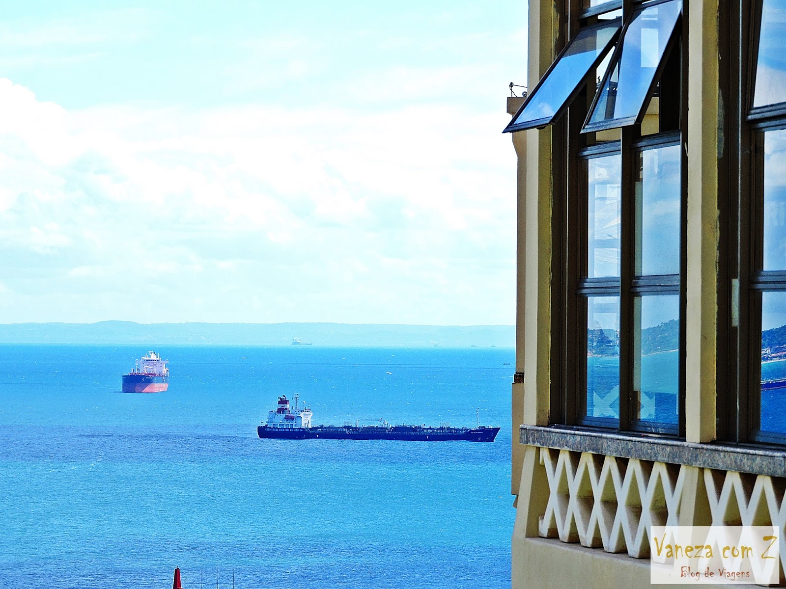 Entramos no Hotel Sol Vitória Marina para tirar algumas fotos e admirar esta vista. Descobrir um tal de píer bar chamado Mahi Mahi em que se paga R$30 para descer num teleférico e usufruir da piscina e do toboágua. Lá embaixo você paga pelo que consumir. Este é o metro quadrado mais caro de Salvador e uma das razões é esta: