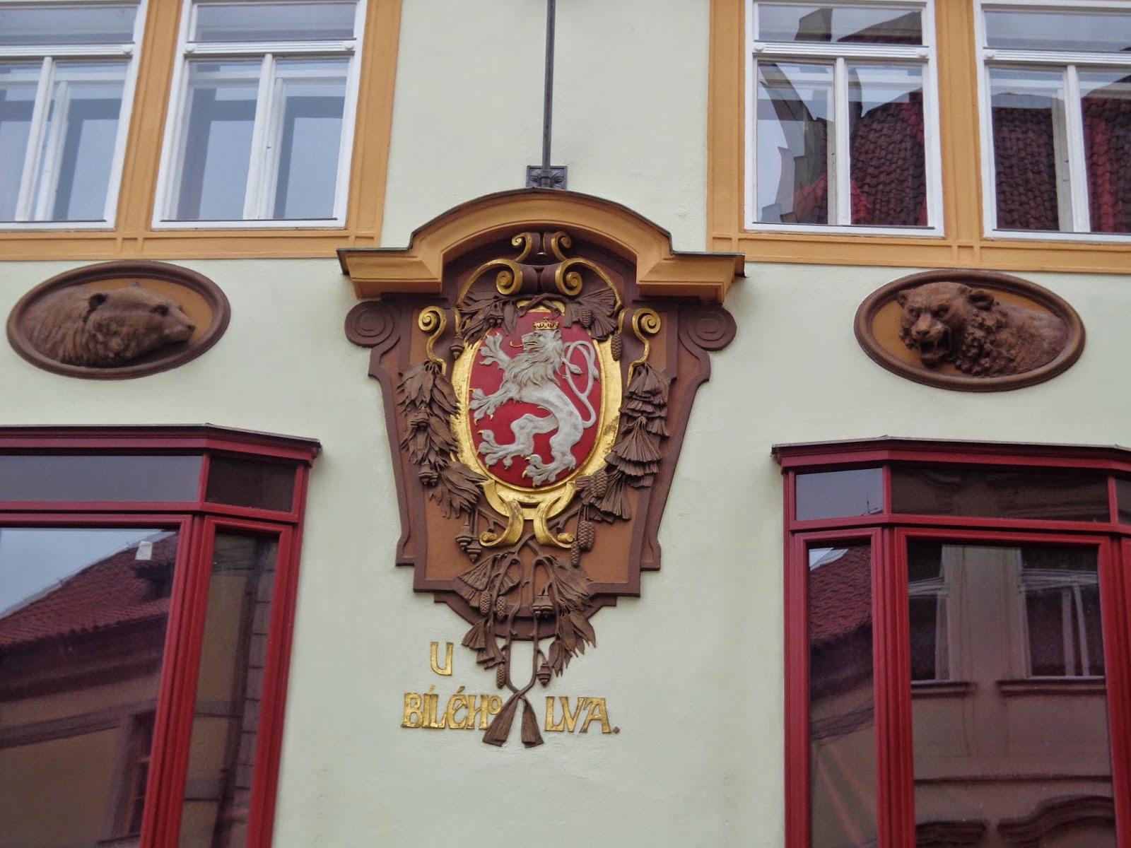 na fachada do prédio um hino a Sao Venceslau pedindo proteção ao povo praguense
