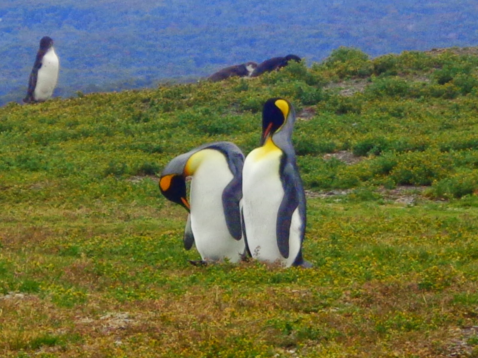 Avistamos os pinguins rei. Na verdade, só vi este casal. Eles são maioria na Antártica.